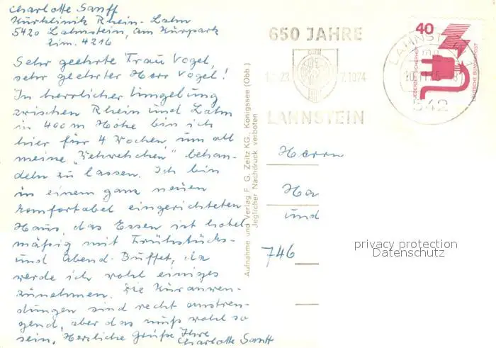 Lahnstein Kurthermen Rhein-Lahn Hallen und Freibad Speisesaal Lahnstein postalisch gelaufen 1975 Erhaltung siehe scans [WerneD78] WernPID7