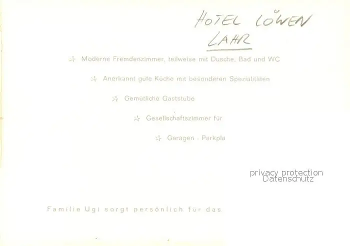 Lahr_Baden Hotel Loewen Restaurant Lahr_Baden postalisch nicht gelaufen nach 1965 Erhaltung siehe scans [FriedD77] Frierer