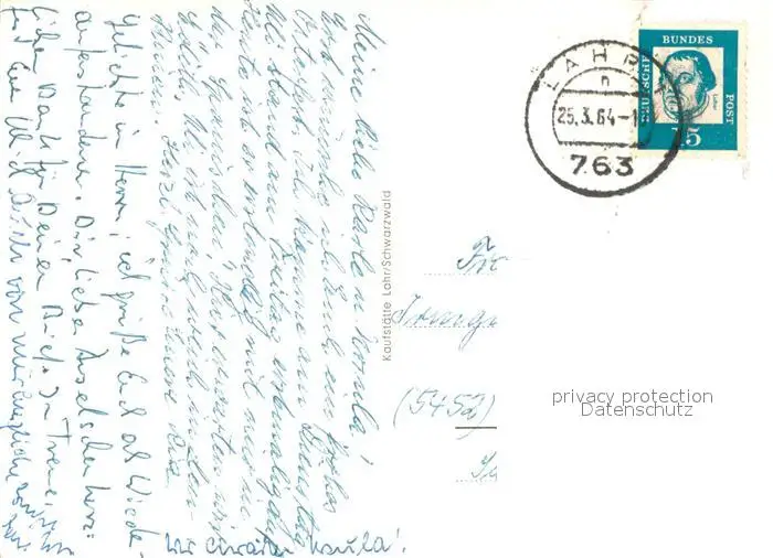 Lahr_Baden Stadtpark Ruine Hohen Geroldsecke Storchenturm Terrassenbad Burgheimer Kirche Lahr_Baden postalisch gelaufen 1964 Erhaltung siehe scans [FriedD77] Frierer