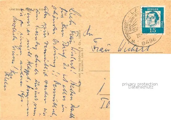 Lam_Oberpfalz Bayr Wald mit Arber Lam_Oberpfalz postalisch gelaufen 1965 Erhaltung siehe scans [FriedD77] Frierer