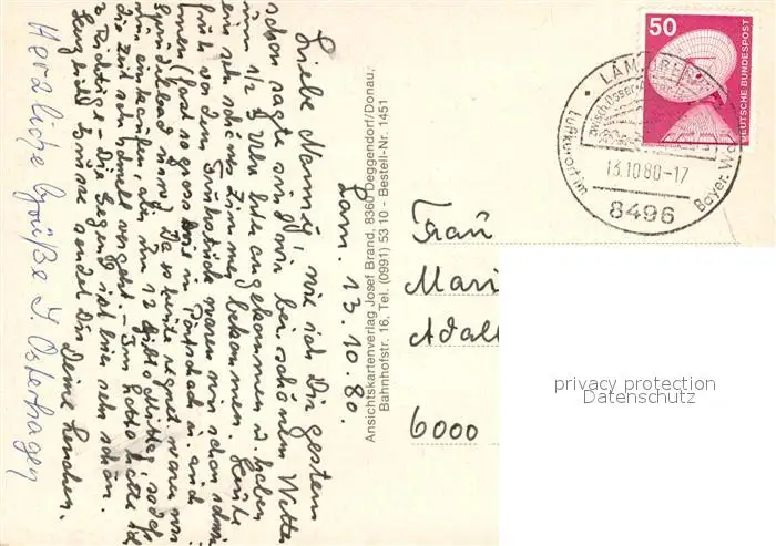 Lam_Oberpfalz Osser Marktplatz Panorama Lam_Oberpfalz postalisch gelaufen 1980 Erhaltung siehe scans [WerneD78] WernPID7