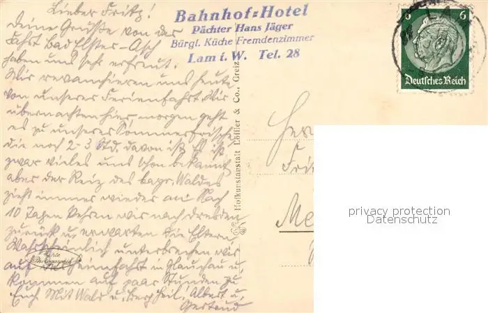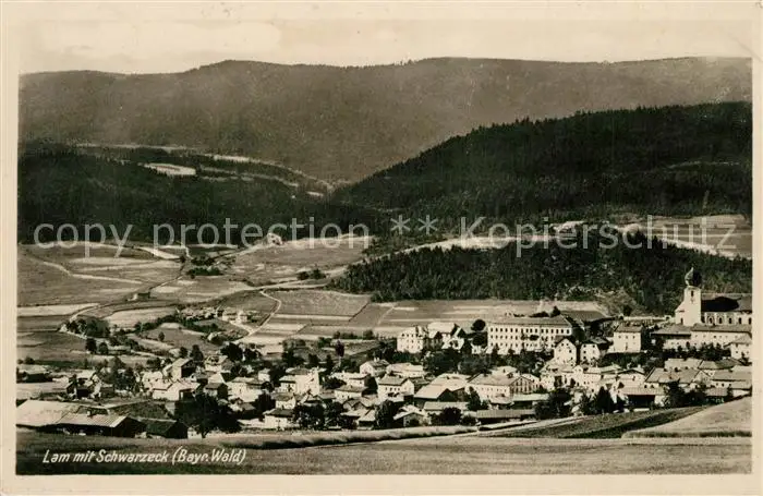 Lam_Oberpfalz Panorama mit Schwarzeck Lam_Oberpfalz postalisch gelaufen 1921-1965 Erhaltung siehe scans [WerneD78] WernPID7