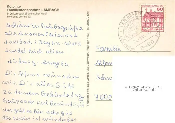 Lambach_Lam Kolping Familienferienstaette Lambach Lambach_Lam postalisch gelaufen 1986 Erhaltung siehe scans [WerneD78] WernPID7