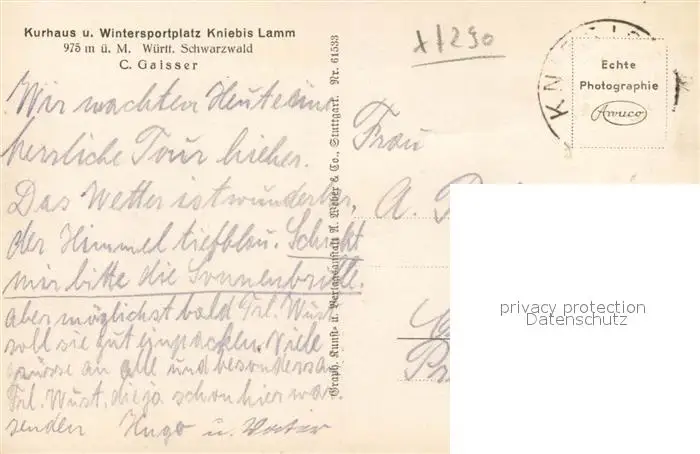 Lamm_Kniebis Kurhaus Kniebis im Schwarzwald Lamm Kniebis postalisch gelaufen 1921-1965 Erhaltung siehe scans [FriedD77] Frierer