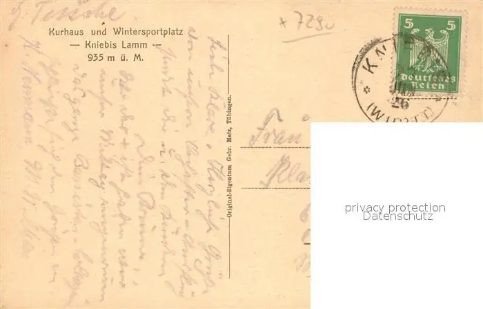 Lamm_Kniebis Kurhaus Wintersportplatz Schwarzwald Fliegeraufnahme Lamm Kniebis postalisch gelaufen 1926 Erhaltung siehe scans [FriedD77] Frierer