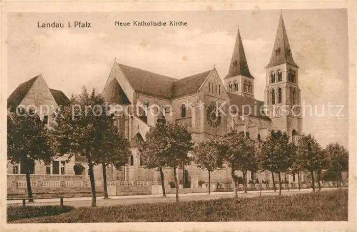 Landau_Pfalz Neue Katholische Kirche Landau Pfalz postalisch nicht gelaufen 1921-1965 Erhaltung siehe scans [KathaD81] Kathoren