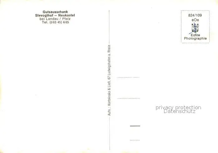 Landau_Pfalz Neukastel Gutsausschank Slevogthoft Landau Pfalz postalisch nicht gelaufen nach 1965 Erhaltung siehe scans [KathaD81] Kathoren