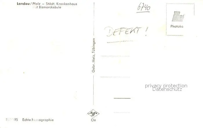 Landau__Pfalz Staedt. Krankenhaus m. Bismarcksaeule postalisch nicht gelaufen 1921-1965 Erhaltung siehe scans [LiesaD40] LiesID40