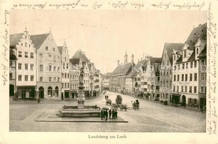 Landsberg_Lech Grosser Platz - Brunnen Landsberg_Lech postalisch gelaufen 1927 Erhaltung siehe scans [LiesaD40] LiesID40