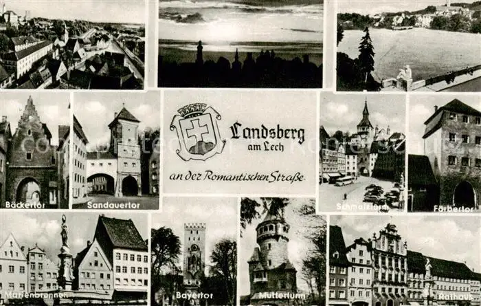 AK / Ansichtskarte Landsberg_Lech Panorama Baeckertor Sandauertor Schmalzturm Faerbergor Marienbrunnen Bayertor Mutterturm Rathaus Landsberg_Lech