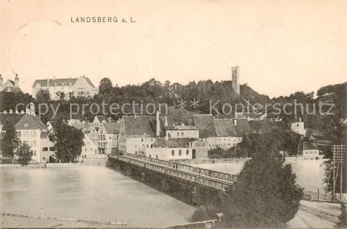 AK / Ansichtskarte Landsberg_Lech Teilansicht m. Bruecke Landsberg_Lech
