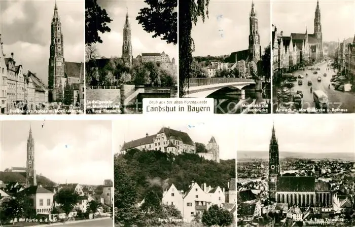 AK / Ansichtskarte Landshut_Isar Dreifaltigkeitsplatz mit Martinskirche Ludwigswehr Burg Trausnitze Isarpartien Landshut Isar