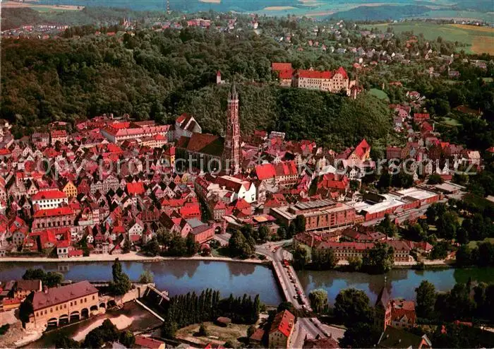 AK / Ansichtskarte Landshut_Isar Fliegeraufnahme mit St Martinskirche und Burg Trausnitz Landshut Isar