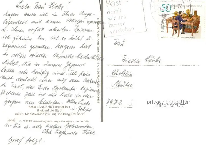 Landshut_Isar Fliegeraufnahme mit St Martinskirche und Burg Trausnitz Landshut Isar postalisch gelaufen 1980 Erhaltung siehe scans [WerneD78] WernPID7