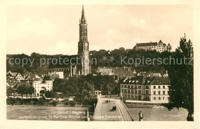AK / Ansichtskarte Landshut_Isar Isarbruecke Luitpoldbruecke St Martins Kirche Schloss Trausnitz Landshut Isar