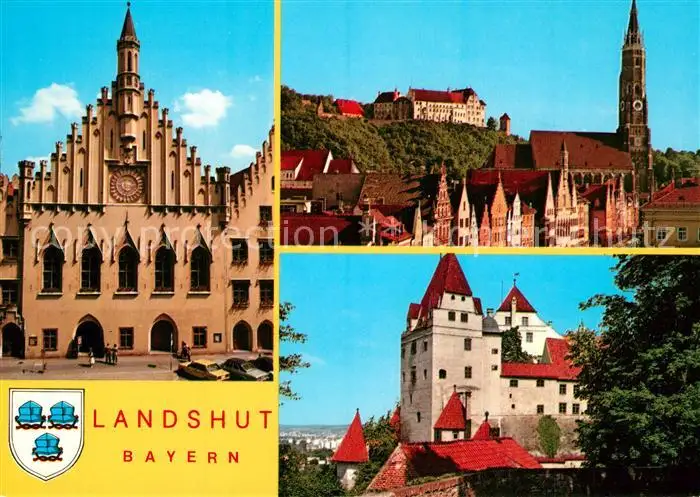 AK / Ansichtskarte Landshut_Isar Rathaus Burg Trausnitz Altstadt Kirche Landshut Isar