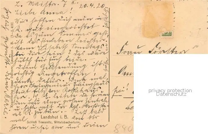 Landshut_Isar Schloss Trausnitz Wittelsbacherturm Landshut Isar postalisch gelaufen 1920 Erhaltung siehe scans [KathaD81] Kathoren