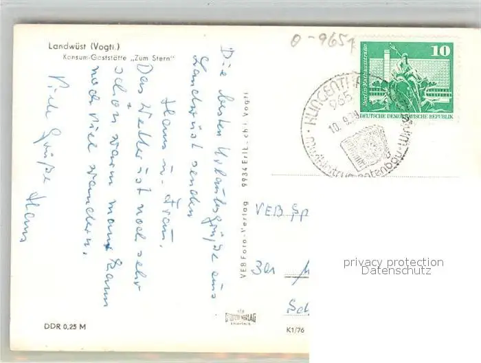 Landwuest Konsum Gaststaette Stern Landwuest postalisch gelaufen 1979 Erhaltung siehe scans [KathaD81] Kathoren