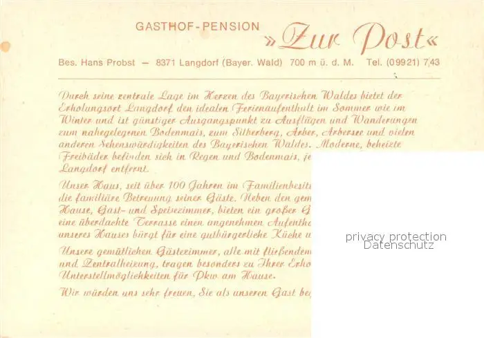 Langdorf_Regen Gasthof Pension zur Post Langdorf Regen postalisch nicht gelaufen nach 1965 Erhaltung siehe scans [FriedD77] Frierer