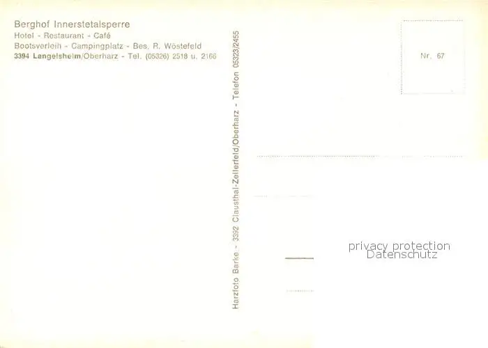 Langelsheim Berghof Innerstetalsperre Hotel Bootsverleih Camping Segelboote Langelsheim postalisch nicht gelaufen nach 1965 Erhaltung siehe scans [LiesaD40] LiesID40