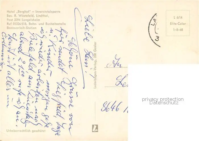 Langelsheim Hotel Berghof Innerstetalsperre Terrasse Langelsheim postalisch gelaufen nach 1965 Erhaltung siehe scans [WerneD78] WernPID7
