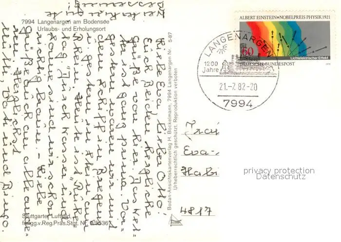 Langenargen_Bodensee Fliegeraufnahme Langenargen Bodensee postalisch gelaufen 1982 Erhaltung siehe scans [WerneD78] WernPID7