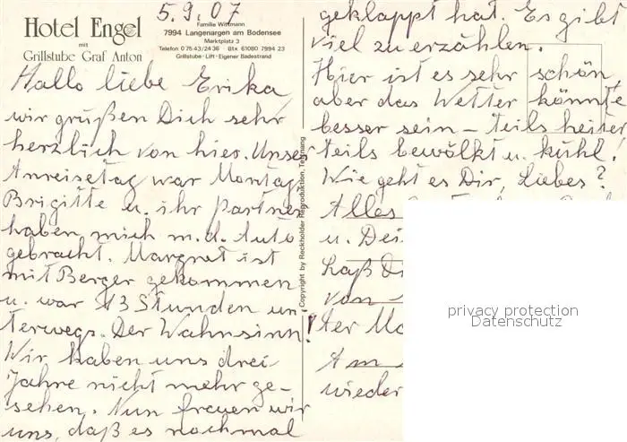 Langenargen_Bodensee Hotel Engel Restaurant Grillstube Schloss Faehre Badestrand Langenargen Bodensee postalisch nicht gelaufen 2007 Erhaltung siehe scans [FriedD77] Frierer