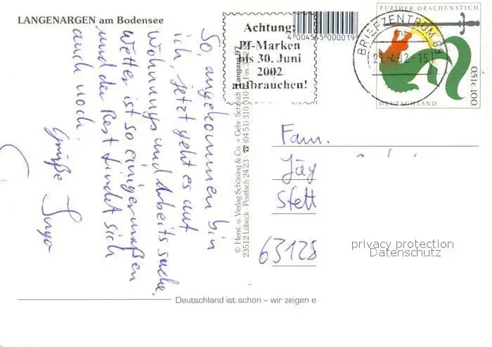 Langenargen_Bodensee Schloss Montfort Gondelhafen Marktplatz Langenargen Bodensee postalisch gelaufen 1982 Erhaltung siehe scans [NatalD47] NataID47