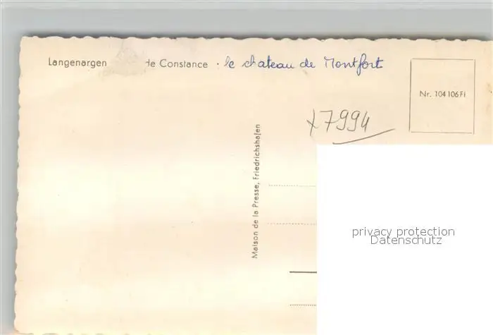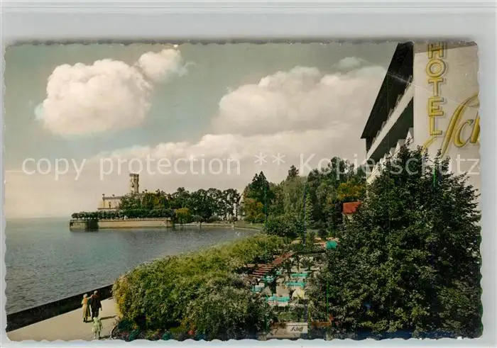 Langenargen_Bodensee Uferpromenade Hotel Terrasse Schloss Montfort Langenargen Bodensee postalisch nicht gelaufen 1921-1965 Erhaltung siehe scans [FriedD77] Frierer