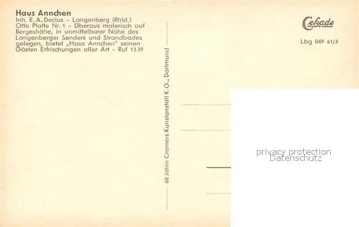 Langenberg_Rheinland Jugendherberge Haus Annchen Langenberg_Rheinland postalisch nicht gelaufen 1961 Erhaltung siehe scans [FriedD77] Frierer