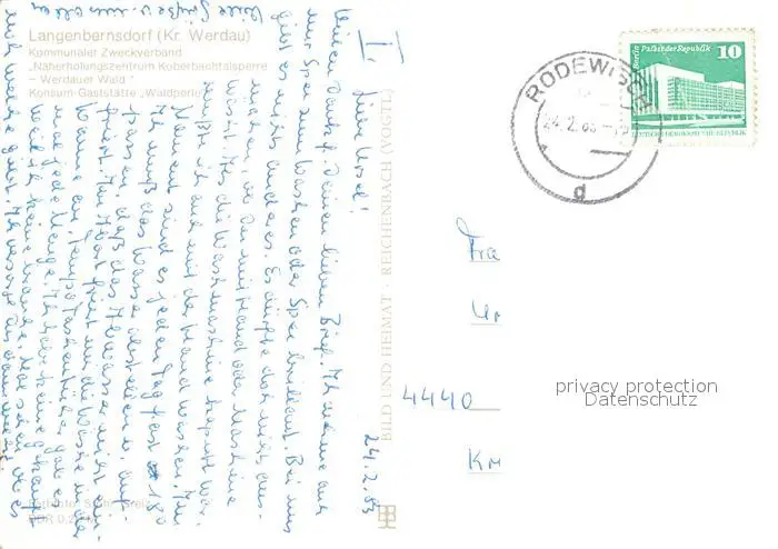 Langenbernsdorf Naherholungszentrum Koberbachtalsperre Werdauer Wald Konsum Gaststaette Waldperle Flugzeug Langenbernsdorf postalisch gelaufen 1983 Erhaltung siehe scans [WerneD78] WernPID7