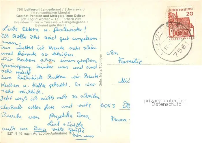 Langenbrand_Forbach Gasthof zum Ochsen Langenbrand Forbach postalisch gelaufen nach 1965 Erhaltung siehe scans [NatalD47] NataID47
