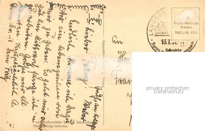 Langenburg_Wuerttemberg Fliegeraufnahme Langenburg Wuerttemberg postalisch gelaufen 1921-1965 Erhaltung siehe scans [WerneD78] WernPID7