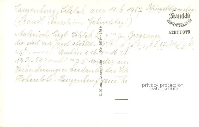 Langenburg_Wuerttemberg Schloss Langenburg Details Langenburg Wuerttemberg postalisch nicht gelaufen 1957 Erhaltung siehe scans [WerneD78] WernPID7
