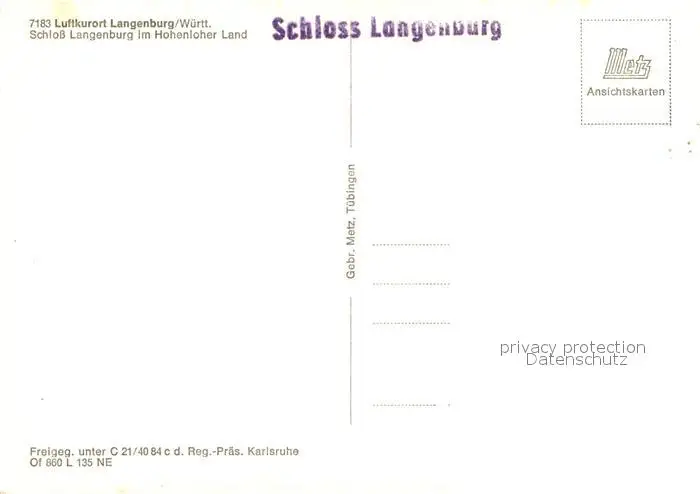 Langenburg_Wuerttemberg Schloss Langenburg Fliegeraufnahme Langenburg Wuerttemberg postalisch nicht gelaufen nach 1965 Erhaltung siehe scans [WerneD78] WernPID7