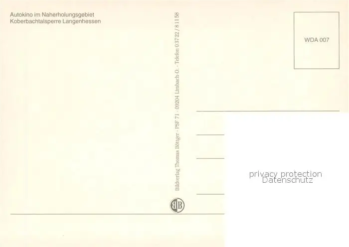 Langenhessen Autokino im Naherholungsgebiet Koberbachtalsperre Altes Segelschiff Badestrand Langenhessen postalisch nicht gelaufen nach 1965 Erhaltung siehe scans [FriedD77] Frierer