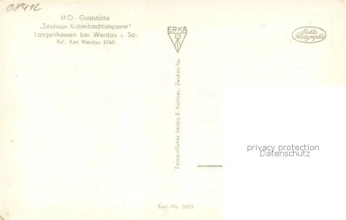 Langenhessen HO-Gaststaette Seehaus Koberbachtalsperre Aussenansicht Langenhessen postalisch nicht gelaufen 1921-1965 Erhaltung siehe scans [LiesaD40] LiesID40
