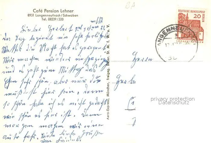 Langenneufnach Kategorie Alte Ansichtskarten Postkarten bx94408 Langenneufnach Pension Cafe Lehner Gaesteraum Swimming Pool Fliegeraufnahme Langenneufnach postalisch gelaufen nach 1965 Erhaltung siehe scans [FriedD77]