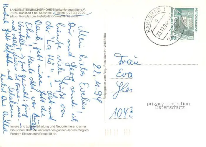 Langensteinbach_Karlsbad Langensteinbacherhoehe Bibelkonferenzstaette Reha-Krankenhaus Fliegeraufnahme Langensteinbach_Karlsbad postalisch gelaufen 1994 Erhaltung siehe scans [FriedD77] Frierer
