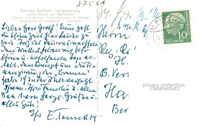 Langenwang_Fischen Pension Torfisch Aussenansicht Winter-Schnee m. Entschenkopf Nebelhorn Rubihorn Langenwang Fischen postalisch gelaufen 1958 Erhaltung siehe scans [LiesaD40] LiesID40