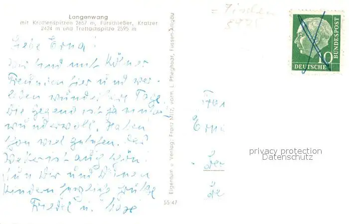 Langenwang_Fischen mit Krottenspitzen Fuerschiesser Kratzer und Trettachspitze Langenwang Fischen postalisch nicht gelaufen 1921-1965 Erhaltung siehe scans [WerneD78] WernPID7