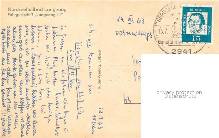 Langeoog_Nordseebad Kategorie Alte Ansichtskarten Postkarten bx87087 Langeoog_Nordseebad Fahrgastschiff Langeoog III Langeoog_Nordseebad postalisch gelaufen 1963 Erhaltung siehe scans [WerneD78]