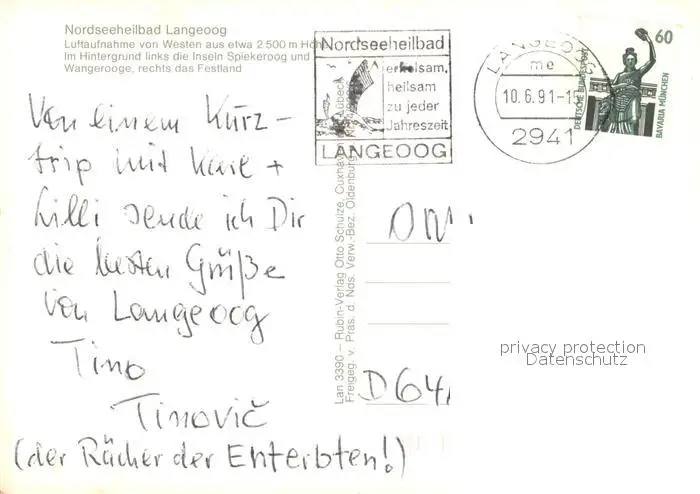 Langeoog_Nordseebad Fliegeraufnahme Langeoog_Nordseebad postalisch gelaufen 1991 Erhaltung siehe scans [WerneD78] WernPID7