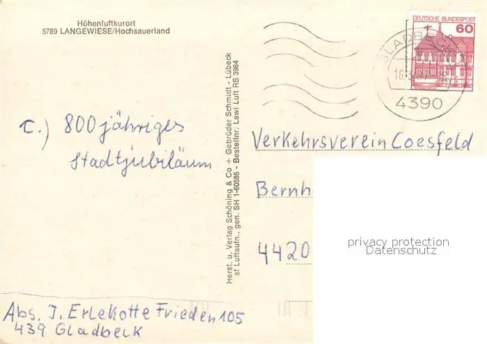 Langewiese Fliegeraufnahme Langewiese postalisch gelaufen 1987 Erhaltung siehe scans [WerneD78] WernPID7