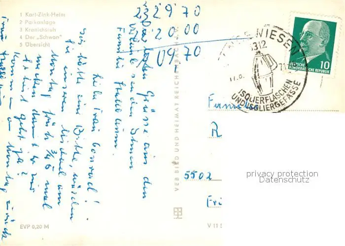 Langewiesen Karl Zink Heim Parkanlagen Kranichsruh Der Schwan Panorama Langewiesen postalisch gelaufen 1970 Erhaltung siehe scans [WerneD78] WernPID7
