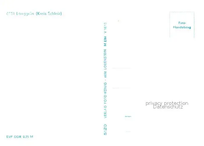 Langgruen Panorama Teilansichten Motiv mit Kirche Freibad Handabzug Langgruen postalisch nicht gelaufen 1984 Erhaltung siehe scans [FriedD77] Frierer