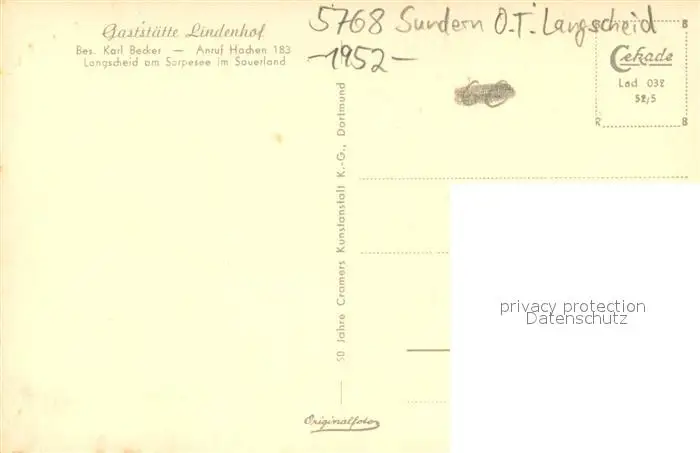 Langscheid_Sorpesee Saal in der Lindenhof Gaststaette Langscheid Sorpesee postalisch nicht gelaufen 1952 Erhaltung siehe scans [WerneD78] WernPID7