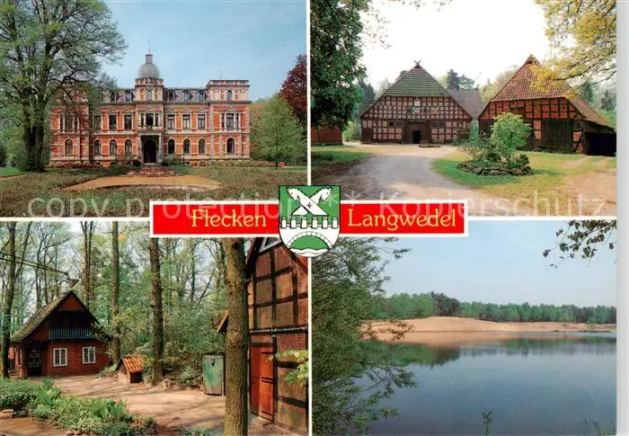 AK / Ansichtskarte Langwedel__Verden Schloss Fachwerkhaeuser Seepartie