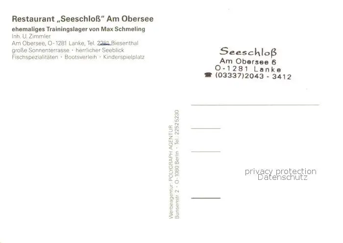 Lanke Restaurant Seeschloss Lanke postalisch nicht gelaufen nach 1965 Erhaltung siehe scans [LiesaD40] LiesID40