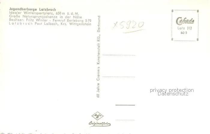 Latzbruch Jugendherberge Latzbruch postalisch nicht gelaufen 1960 Erhaltung siehe scans [FriedD77] Frierer